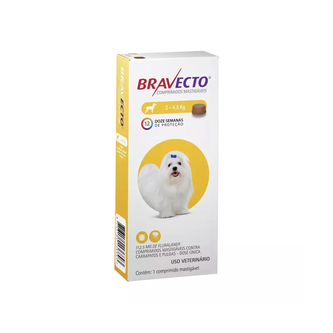 ANTIPULGAS E CARRAPATOS PARA CÃES MSD BRAVECTO 112,5MG - ATÉ 4,5KG