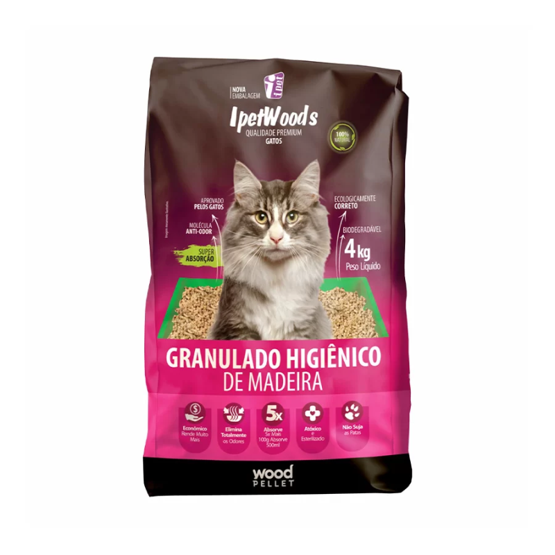GRANULADO HIGIÊNICO DE MADEIRA IPET WOODS 4KG