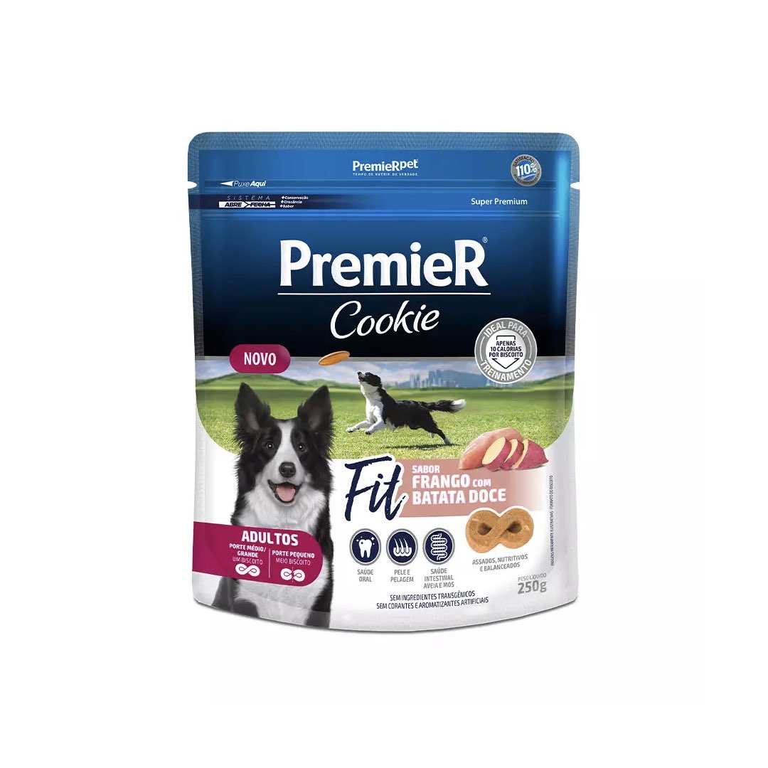 PREMIER COOKIE FIT CÃES ADULTOS SABOR FRANGO COM BATATA DOCE 250G