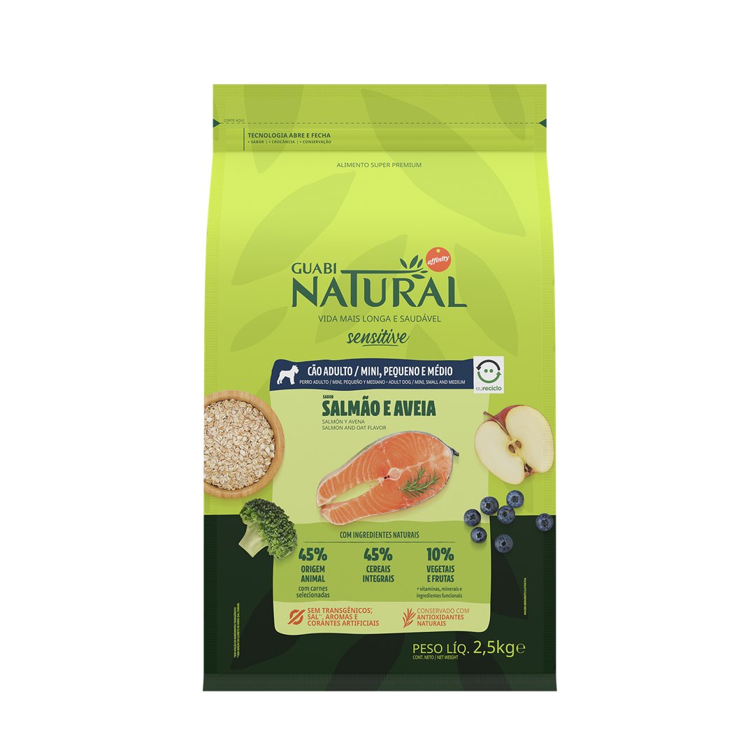 RAÇÃO GUABI NATURAL CÃO ADULTO SENSITIVE MINI, PEQUENO E MÉDIO SALMÃO E AVEIA