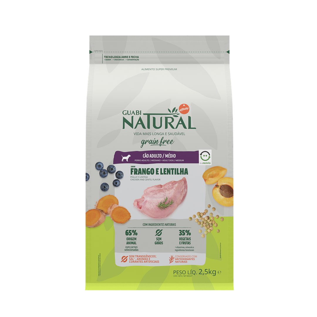 RAÇÃO GUABI NATURAL GRAIN FREE CÃO ADULTO MÉDIO FRANGO E LENTILHA