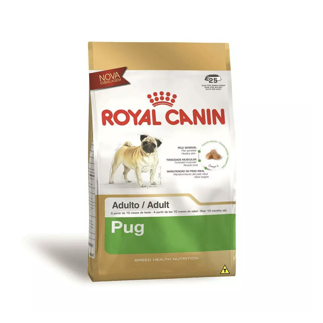 Indicada para cães adultos | Específica para pets da raça Pug | Proporciona nutrientes que favorecem a derme | Auxilia n