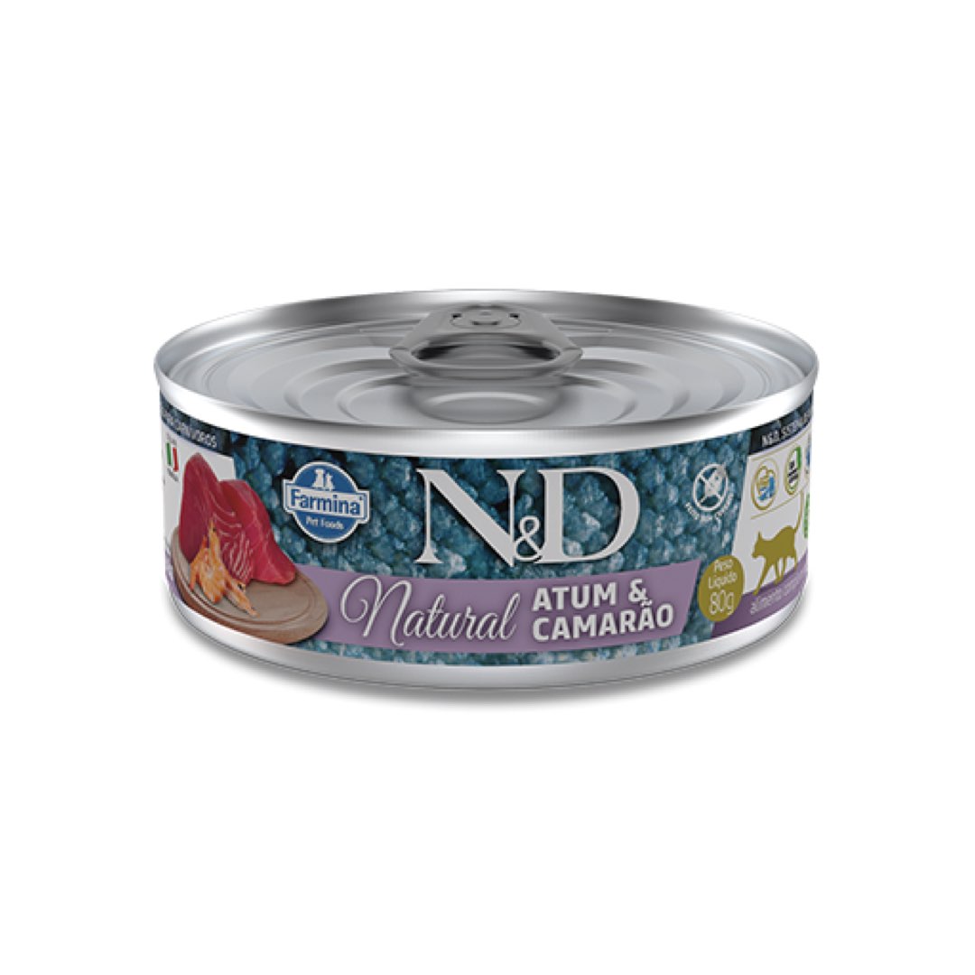 RAÇÃO ÚMIDA FARMINA PARA GATOS ND NATURAL ATUM E CAMARÃO 0,08KG
