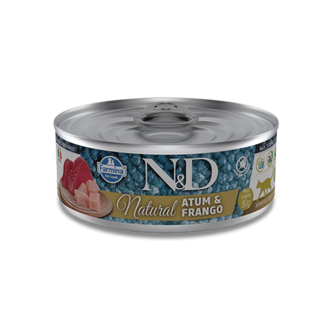 RAÇÃO ÚMIDA FARMINA PARA GATOS ND NATURAL ATUM E FRANGO 0,08KG